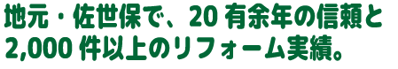 ![]() 地元で20年間の信頼と実績(過去2.000件以上のリフォーム実績)。地元密着でアフターフォローも万全。国内主要メーカーとの長年の取引で低価格にて商品をご提供します。